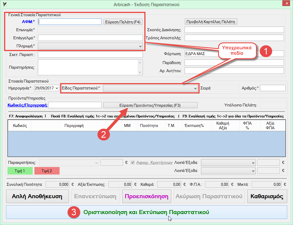 Τα απολύτως αναγκαία πεδία για την έκδοση ενός παραστατικού