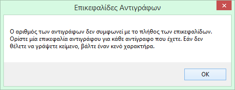Οι ονομασίες πρέπει να είναι όσες και ο αριθμός των αντιγράφων που έχετε ορίσει. Στην εικόνα 15.4 έχουμε ορίσει 3 αντίγραφα, αλλά στη εικόνα 15.5 έχουμε ορίσει 4 ονομασίες. Αν δοκιμάσουμε να αποθηκεύσουμε τις αλλαγές θα εμφανιστεί το μήνυμα (εικόνα 15.6):