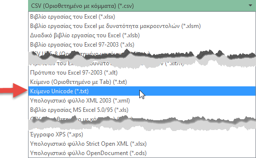 Δημιουργία του αρχείου Excel και εξαγωγή σε μορφή Unicode